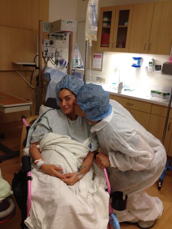 He then shared photo of a very calm looking Mazza ? with whom he has a daughter, Gia, who will be 3 this week ? all scrubbed in and ready in the delivery room.