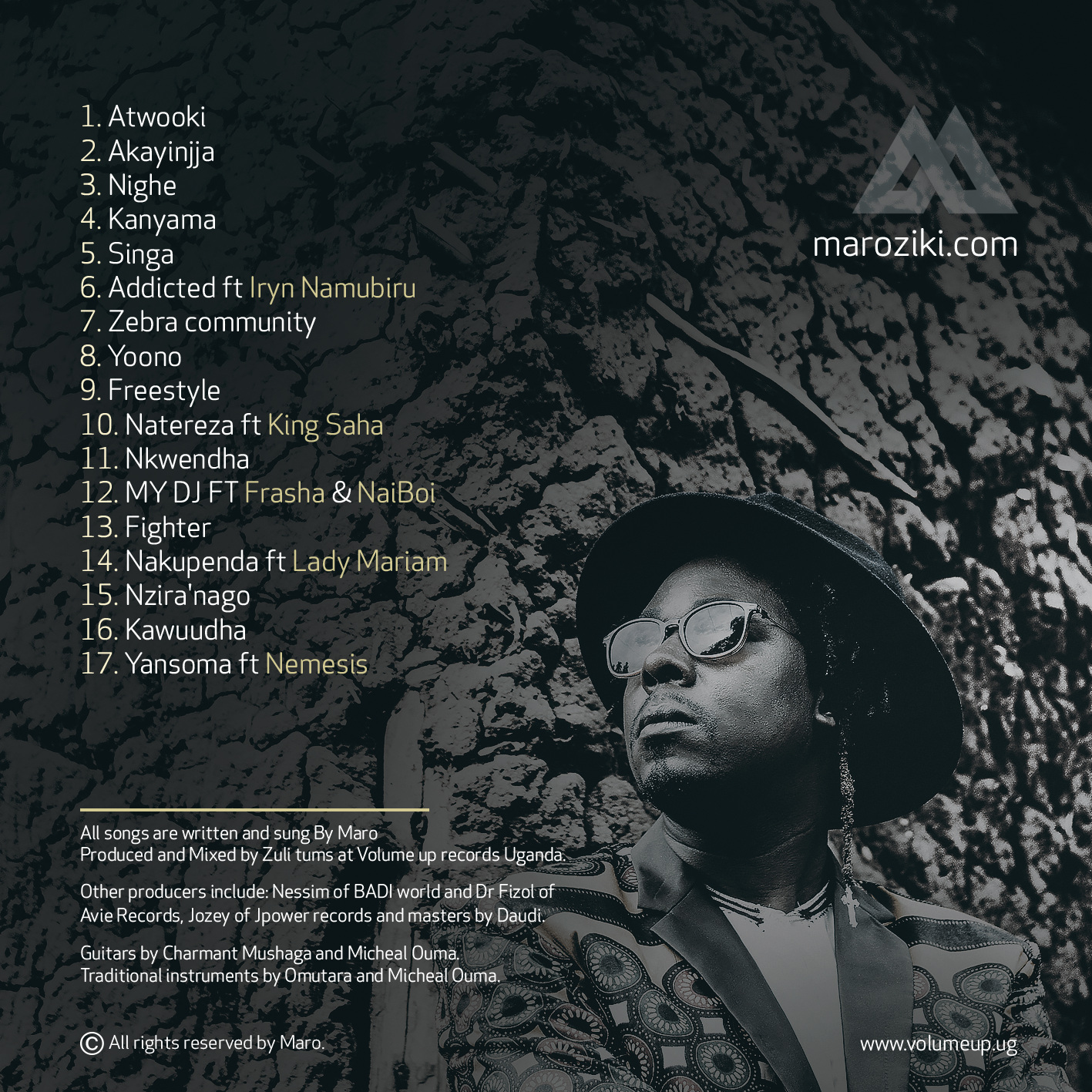 The album consists of 17 tracks with five collaborations: Frasha from Kenya, Tindatine, King Saha, Nemesis and Iryn Namubiru. It was mixed and mastered by Zuli Tums of Volume Up Records. Moreover, it was compiled by Maro and Zuli Tums. Maro wrote and composed the music. Live instruments were done by Micheal Ouma, Chamant Mushaga, and Omutara of Fusion Band. Other producers include: Nessim Jozey J Power, and Dr Dokita Fizol Theo.