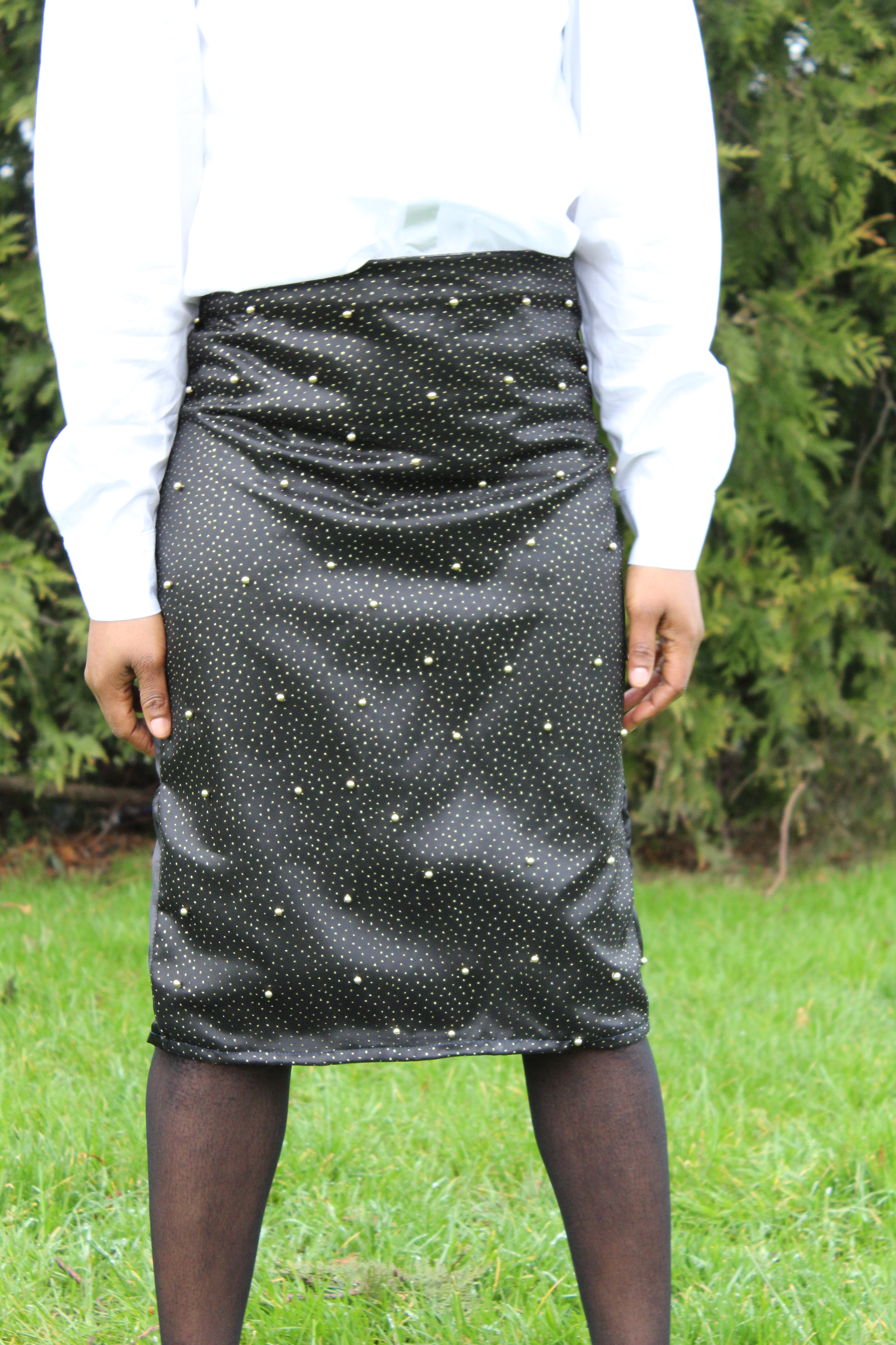 The Gold Black Embellished Skirt can be worn at an event, church, work or even on your graduation day!