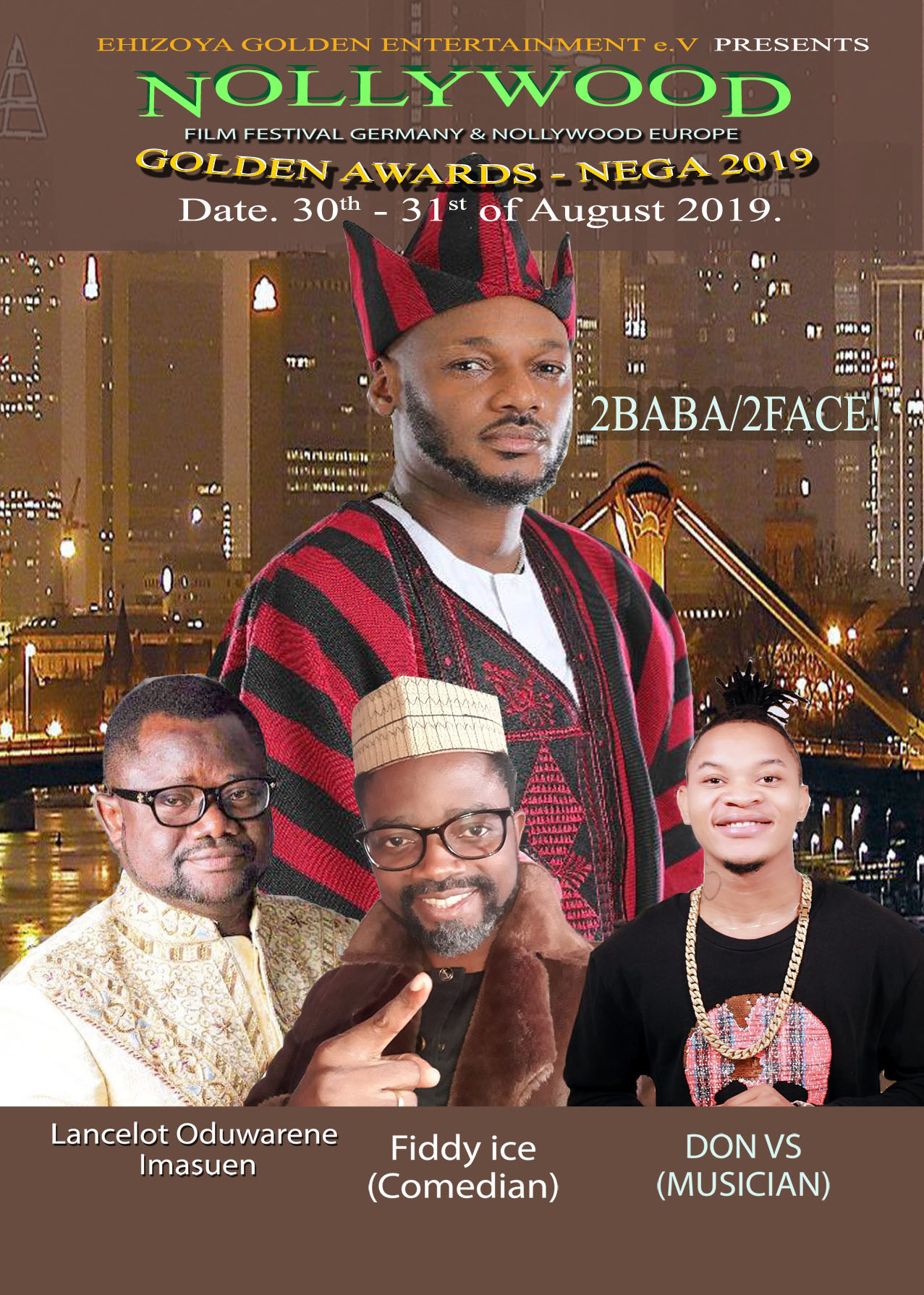 The festival will climax on 31 August, 2019 with the Nollywood Europe Golden Awards and Gala-night/Afterparty where 2 Baba will thrill the audience to a musical experience and comedian Fiddy Ice is listed to anchor the event. Other artistes that will perform at the event include some Europe-based musicians Don VS from Italy, Chuks Cbily from Germany, Lilian Dinma from Denmark, Mark Edo the Shaking Shaking master from Spain, Berlin-based Keishera and Ghana top star – Zeal of VVIP (the Afrobeat star that has already done a collabo with 2 Baba) among others.